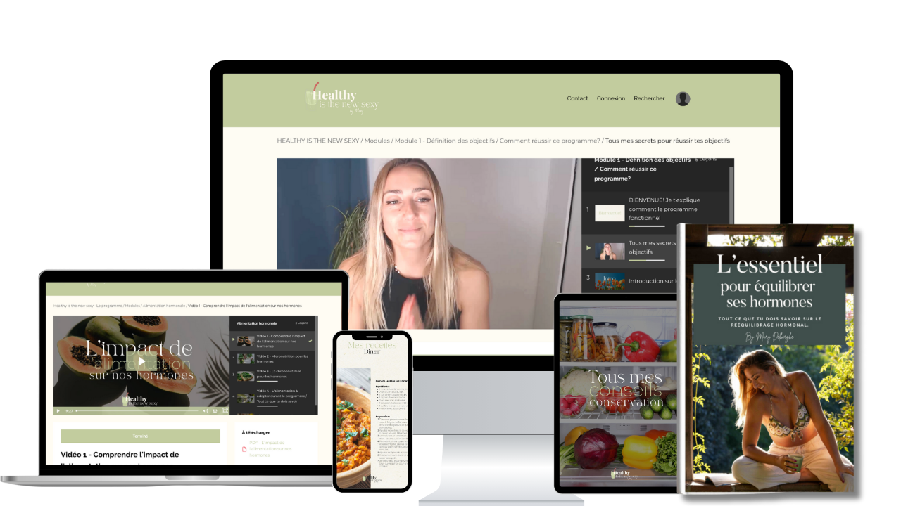 Healthy is the New Sexy, c’est LE seul programme naturel conçu pour les femmes qui veulent rééquilibrer leurs hormones, retrouver leur énergie, apaiser leurs symptômes (cycles irréguliers, ballonnements, fatigue chronique) et reprendre enfin le contrôle de leur corps, sans frustration.